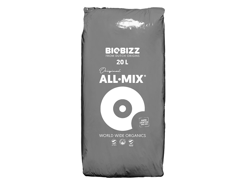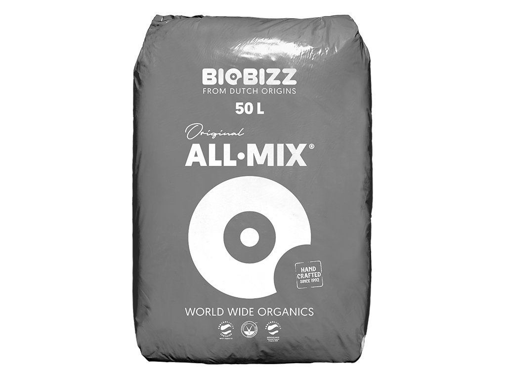 Biobizz All Mix je prémiový univerzálny prírodný substrát jedinečný svojim zložením. Obsahuje rašelinu, humus vyrobený dážďovkami, mykorhízne huby a perlit.